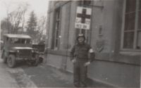 Staff Sergeant Clarence Williams was a combat medic assigned to the US 122nd Medical Battalion, 42nd Division (the Rainbow Division) during World War II. Williams deployed to France in January 1945 and was present at the liberation of Dachau concentration camp in April of that year. Williams photographed both the liberation of Dachau and other experiences he had during the war in Europe. Growing up in Crescent and Council Bluffs, Iowa, he eventually settled in Lincoln, Nebraska after the war. Clarence’s collection of photographs and letters between he and his wife, Gretchen, detailing his World War II experiences were made available to the Institute for Holocaust by Clarences son, Dr. Tom Williams. There are instances where Clarence does not use proper English conventions in his descriptions. We have transcribed his writing as it appears in the original text. Hear Clarence's stories directly from his family members.
