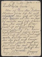Wie ich von der lieben Mama hörte bist du gut abgereißt. Wie geht es dir? Wie gefällt es dir im Heim? Ich würde mich sehr freuen von dir was zu hören. Bald ist es Hanukkah. Freußt du dich? Sei mein liebes Kind immer schön brav und lieb. Es sind dort wohl viele Kinder und wird dir die Zeit nicht lange werden. Bleibe recht gesund und sei recht herzlich gegrüßt und geküßt von