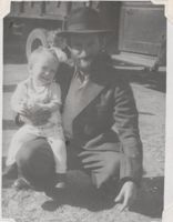 Miriam's brother, Leibish, pictured in top left with unknown child. Leibish and wife, Devorah, bottom left. Leibish and unknown men, bottom middle. Leibish and Devorah's children, bottom right. Back left, Avraham, Tzvi; front, left to right, Sima and Sari.