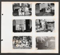 Left to right - Row 1 - Miriam, Alex, & I.G; Alex on phone; Row 2 - Alex with Grossman's first television, a Silvertone; I.G., Alex, Miriam; Row 3 - unknown children; Alex watching construction of outside steps to second level