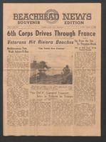 This second Souvenir Edition of the Beachhead News, commemorating the 100th Edition of our publication of news for front line troops and containing a resume of the Southern French campaign, has been published in 80,000 copies and has been ccarefully censored so that subscribers may send their copy home.