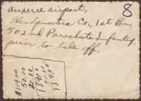 Text reads, "Auperre (or Anperre) Airport, Headquarters Co., 1st Bn, 502nd Parachute Infantry, prior to take off."