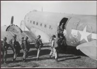 Paratroops loading into a transport plane, as part of Operation Greenback in September of 1945.