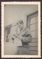 Norman is standing in his uniform, reading the paper in Bruck, Austria.