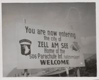 Zell am See sign, which reads, "You are now entering the city of Zell am See Home of the 506 Parachute Inf. (Fallshirmjäger) WELCOME"