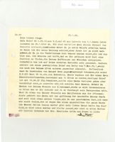 an. Wir sind natürlich über Deinen Wechsel des Domizils erstaunt, inzwischen wirst Du ja meine Briefe erhalten haben, in denen ich Dir meine Meinungschrieb, aber diese ist ja nicht maßgebend, da Du ja die Verhältnisse dort besser kennenwirst als ich von hier aus. Ich wünsche und hoffe, dass es Dir gelingen wird dort einePosition zu finden, die Deinen Hoffnungen und Wünschen entspricht. Jedenfalls bin ichauf Deine nächsten Berichte sehr gespannt. Gestern erhielt ich einen gewöhnlichen Briefvon Betty vom 7. Nov. 39!, worin sie noch von Deinem Glück anderer gegenüberschreibt. Hoffentlich hast Du in der Zwischenzeit von Margot Dein Augenglasrezeptbekommen, sie wohnt N.Y. 233 West 99th Str. bei Schönholz. Heute beginne ich Direinen Satz Kameradschaftsmarken, bestehend aus 12 Stück zu senden, heutiger Brief istmit 16. 24. 25 Pfg. frankiert, sollte eine Marke verloren gehen oder beschädigt sein, soschreibe mir, ich schicke dann Ersatz. Sobald Du Marken von Deinem Freunde aus N.bekommst, würde es mich interessieren zu hören, was er Dir schickt und ob er überhauptsein Versprechen hält. Hast Du etwas von Deiner Freundin aus Californien aus der Pflaumenkiste gehört? Die Sache mit der Auflösung der Geschäfte Deines Chefs musswohl doch etwas anders liegen als Du uns geschrieben hast. Ich kann mir nicht denken,dass er wegen des einen Angestellten die ganze Sache ins Wasser fallen lassen musste! Also mein lieber Heini halte den Kopf hoch, es wird schon werden und bleibe gesund,wir sind in allen Zeiten mit unseren Gedanken bei Dir.