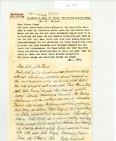 Wir haben diese Woche keine Nachricht von Dir, hoffen aber, dass Du nach der Operation wieder ganz auf dem Posten bist. Heute ist bei uns der bis jetzt heißeste Tag, es sind 30 Grad im Schatten und kann ich mir demnach vorstellen, wie warm es bei Dir dort ist. Wenn jetzt auch hier beim amerikanischen Konsulat Einschränkungen für die Erteilung der Visen eingetreten sind, so bitte ich Dich trotzdem alle fertigen Papiere für uns recht bald einzusenden. Von Suse hatten wir über das Rote Kreuz vom Februar Nachricht, dass es ihnen gut geht. Hast Du schon an Oskar und Ernst Deine Adresse mitgeteilt?