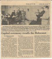 "Millions upon millions of innocent men, women and children perished in the most brutal of all nightmares," said death camp survivor Sam Fried of Omaha. It is well we should remember and memorialize, but man must confront the Holocaust. We cannot turn our backs and go forward. This tragic event occurred only 40 years ago. In 40 more years, it is likely there won't be any survivors. Those of you who survived will never forget.