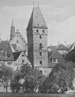 A close-up of the Metzgerturm (City Wall with Butcher Tower).